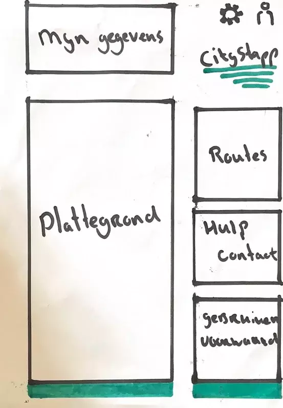 Wij hebben na onderzoek besloten om bij vakantie- en recreatieparken waarde te creëren door middel van een app, namelijk de CityStapp. Via deze app kan de gebruiker alles regelen met zijn of haar step. Van het huren tot bepaalde routes en een helpdesk, alles staat er in. Hieronder is het te zien met de layout van de app en een plattegrond met routes.